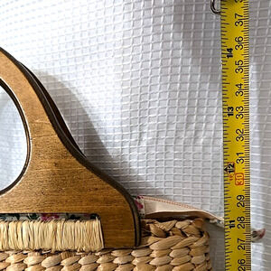 Vtg Cappelli Straworld Picket Fence Purse Wood Handles Rafia Lined Cottage Core