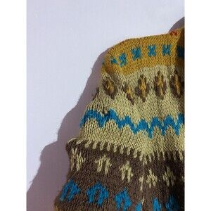 Vtg Cardigan Sweater M Brown Wool 70s Western Fall Bohemian Aztec Cabincore