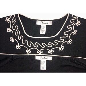 Vtg Carducci Black White Embroidered Cardigan Jacket & Shell Set Women's Size XL