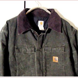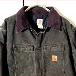 Vtg Carhartt Moss Green Denim Corduroy Quilted Jacket Sz 3XL . Good Shape .Minor Scuffs Marks and Stains . Missing Button Snap Hoodie .