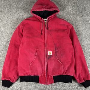 Vtg Carhartt J04 Jacket Mens 2XL Red Distressed Duck Canvas Active Full Zip Work