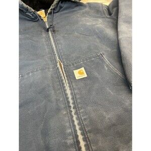 Vtg Carhartt Jacket Navy DISTRESSED Duck Canvas Quilted Hooded Coat See Pics