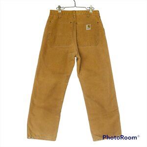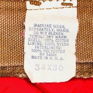 Vintage Carhartt red quilt lined workwear pants in men's size 34x30. PLEASE NOTE! Waist measures 30”, inseam measures 27.5” instead of the 30” indicated on the tag! USA made of 100% cotton with a 100% nylon lining. Excellent condition with no holes, tears, stains, or ripped seams. Light distressing to bottom of cuffs, please see photos. Smoke free, pet friendly home.