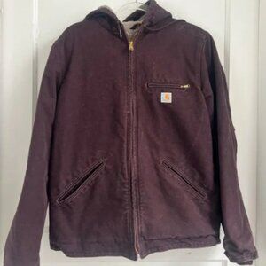 Vtg Carhartt Sherpa Lined Jacket Canvas Deep Wine M Detroit WJ141-DWN