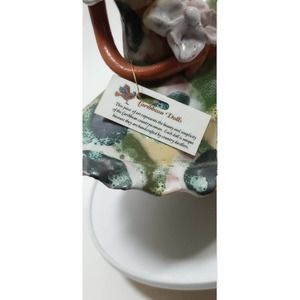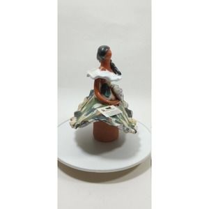 Vtg Caribbean Dolls Girl Terracotta Figure Flowing Dress Big Flower Hand Painted