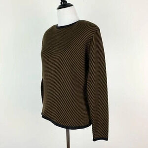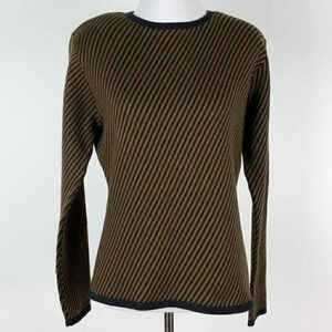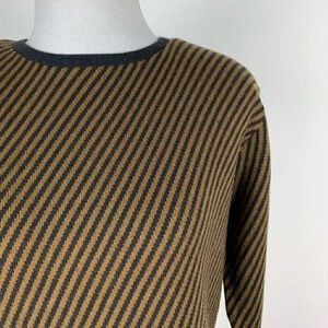 Vtg Carlisle womens sweater size M black brown striped 50% cashmere 50% silk button back 80s 90s