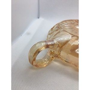 This beautiful peach carnival glass dish can be used for candy, nuts, or purely for decorative purposes. It is in excellent pre-loved condition, with no chips, cracks or scratches. Perfect for carnival glass collectors. Five inches across without handle, six and a half inches with handle, one inch high.