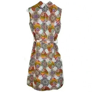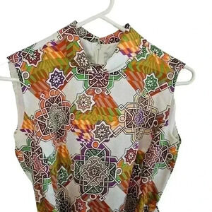 Vtg Carol Brady Style Dress Groovy Pattern Sleeveless Orange, Green And Purple