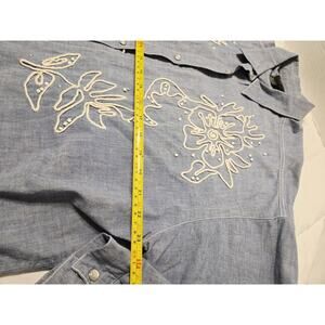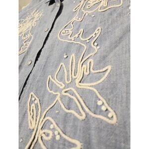Vtg Carole Little Sz L Blue Western Embroidered Blouse Shirt Cotton Preppy Fairy