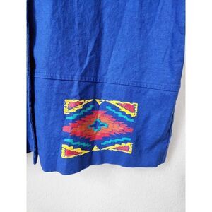 Vtg Carolina Colours womens linen blend southwestern stamp button front shirt 10