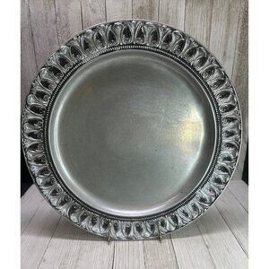 Vtg Carson's Statesmetal Pewter Serving Platter Tray Decorative Rim 12.5" DIA