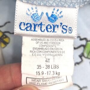 Vintage 90s Carter's light blue 2 piece pajamas set in a cute bug print. Size is tagged as 4T, but looks to fit better as 3T. Please check the measurements provided.