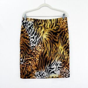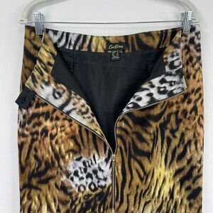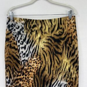 Vtg Cartise Skirt Womens 8 Brown Black Leopard Pencil Skirt Scuba Gold Zipper
