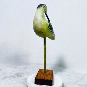 Decorative wooden shorebird figurine with vibrant painted details, mounted on a wooden base. Ideal for coastal or rustic-themed decor.