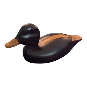 Vintage Carved Wooden Hunting Duck Decoy 14" Long Glass Eye Brown