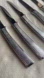 Elegant set of six knives with textured silver handles. Perfect for dining or display.