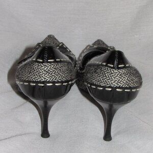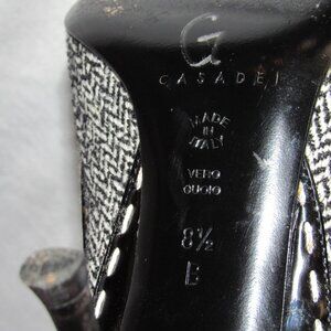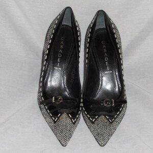 Vintage Casadei Italy Black Patent Leather Herringbone Buckle Pointed Toe Heels 8.5. Made in Italy.