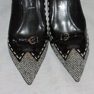 Vtg Casadei Italy Black Patent Leather Herringbone Buckle Pointed Toe Heels 8.5