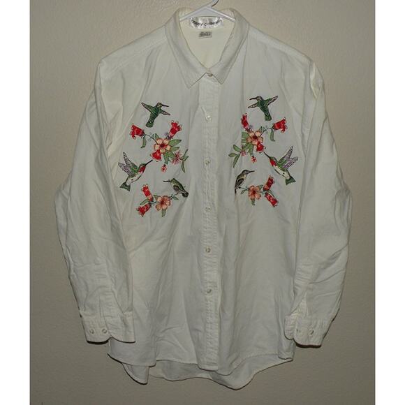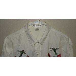 Vtg Casey Coleman Women’s LS Button Shirt Top Large Embroidered Hummingbirds