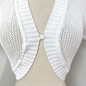 Vintage Caslon White Crochet Bolero Sweater Small ~ Coquette Whimsy Fairy Boho Peasant