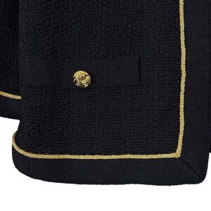 Vtg Castleberry Knit Open Front Cardigan Sweater Jacket Black Gold Trim Size 8