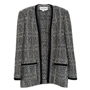 Vtg Castleberry Tweed Knit Open Front Cardigan Sweater Jacket Gray Black Size 12