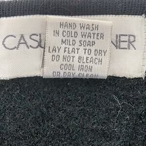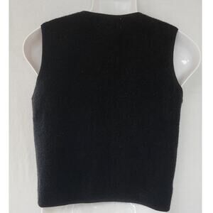 Step back in time with this chic Vtg Casual Corner sleeveless sweater vest! Made from luxurious black wool, this vest is perfect for layering and adding a touch of vintage flair to any outfit.