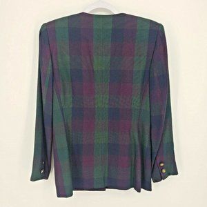 Vintage Casual Corner Women Plaid Button Down Blazer Jacket Size 4 Green Purple