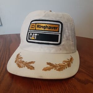 Vtg Caterpillar Trucker Hat Snap Back White CAT Adjustable One Size Read