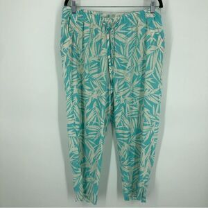 Vtg Cathy Daniels 100% Linen Pants Womens XL Cropped Pull On Leaf Print Pockets
