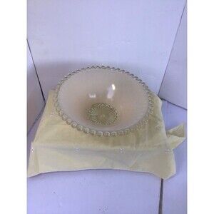 This vintage ceiling mount shade features a delicate lace pattern with a beaded edge, perfect for adding a touch of elegance to any room. Made of art glass in a beige color, this lamp shade dates back to the 1940s and exudes an Art Deco style. With a frosted finish and a cone shape, this original piece from the United States is sure to be a unique addition to any lighting fixture.