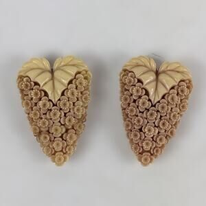 Title: Vtg Celluloid Floral Heart Dress Scarf Clips Cream Beige Carved 1930s Flowers Antique