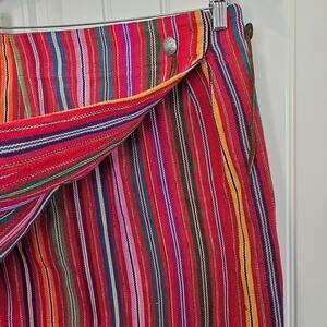 Vtg Central Falls 80s Wrap Skirt Women Size 10 Red Stripped Boho Southwestern