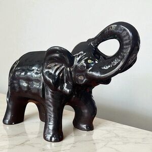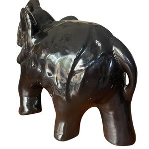 Add a touch of charm and elegance to your home décor with this vintage-style black ceramic elephant figurine. Featuring a high-gloss finish, detailed sculpting, and a raised trunk (a symbol of good luck and prosperity), this piece makes a wonderful accent for any room.