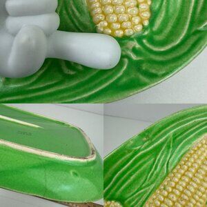 Vtg Ceramic Corn on the Cob Platter Textured Green Yellow Serving Decor Japan