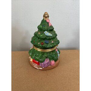 Vtg Ceramic Decorative Christmas Tree Hinged Trinket Box Holiday Decor