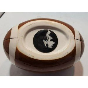 Vtg Ceramic Football Shaped Piggy Bank 7" by 4" Brown and White