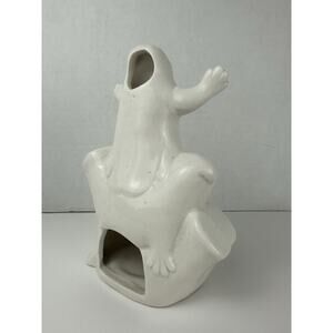 Vtg Ceramic GHOSTS Halloween Candle Holder Figurine Retro Holiday decoration