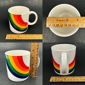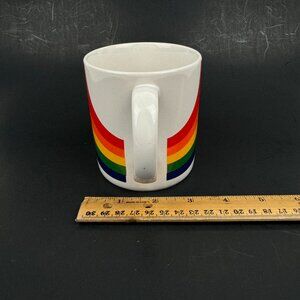 Vtg Ceramic Rainbow Mug Coffee Tea FTDA White Cream w Handle LGBTQ Gay Pride