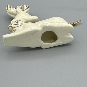 Vtg Ceramic Reindeer Christmas Ornament Gold Gild Accents Holiday Deer Unmarked