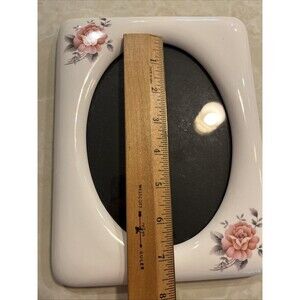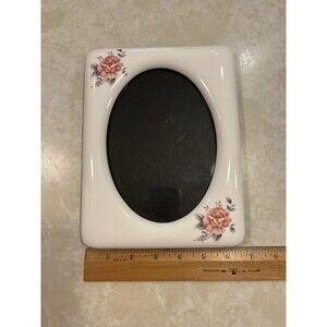 Vtg Ceramic Victorian Rose 8.75x6.75 Photo Frame Oval Inset Tabletop White