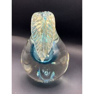 Vtg Chalet Canada Art Glass Blue Gold Clear MCM Paperweight Pear PLEASE READ