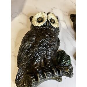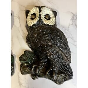 Vtg Chalk Ware Owls Perched on Branch, Wall Hanging Cottage Core Kitchy Decor