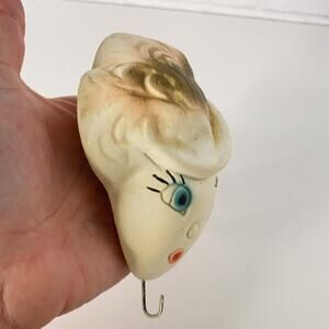 Vtg Chalk Ware Woman Head Wall Hanging Feather Hat Plaster Antique Lady Key Hook.