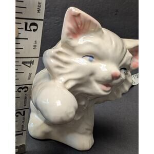 Vtg Chalkware White Kitten Cat Ceramic Hand Painted Pastel Table Decor 50s Cute