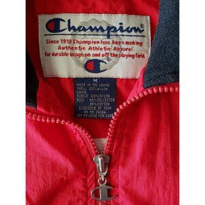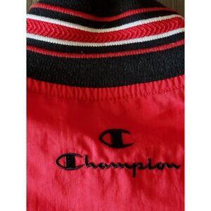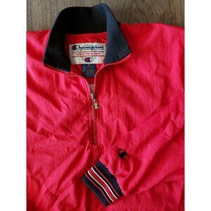 Vtg Champion Pullover Windbreaker Jacket Mens M Red Nylon 1/2 Zip Baggy Big C