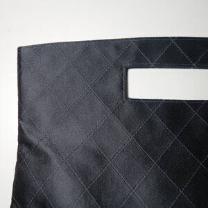 Vintage Chanel satin stitched matelasse clutch handbag made in France with a cutout handle.