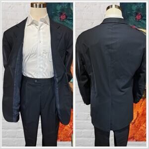 Vtg Chaps Ralph Lauren Giovedi Suit 46L 38x31 Navy Blue John L Ashe Exclusive
