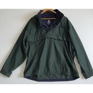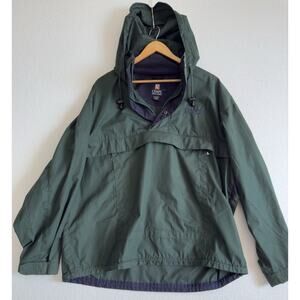 Vtg Chaps Ralph Lauren Green Hooded Pullover Windbreaker Anorak Jacket Large