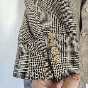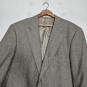 Vtg Chaps Ralph Lauren Mens Silk Wool Blazer Size 44R Houndstooth Plaid 2 Button